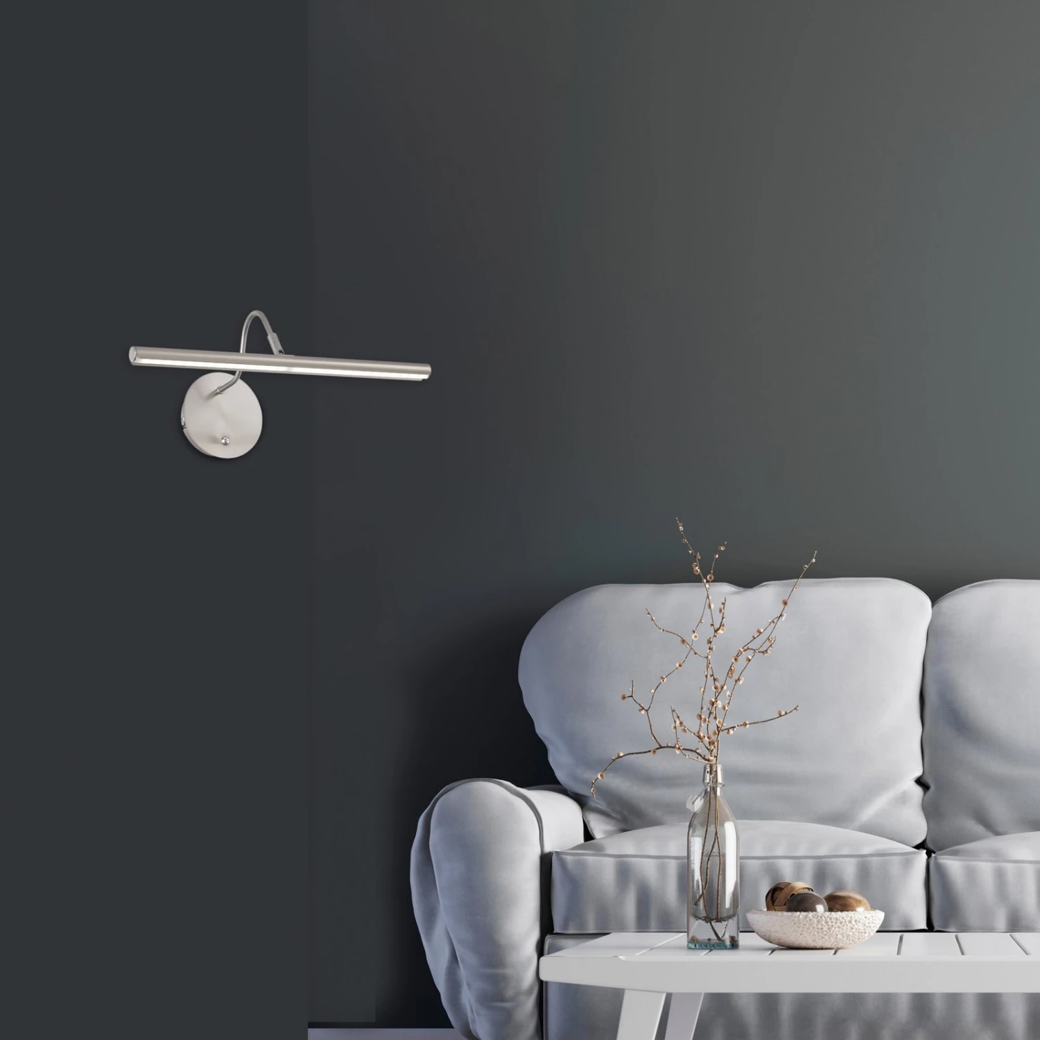 L’applique murale Nami est équipée de LED à faible consommation d’énergie. Grâce à sa forme classique et à son design sobre, elle s’intègre sans peine dans tous les concepts d’aménagement et de couleurs. Un bouton-poussoir intégré à la lampe permet non seulement de régler la couleur de la lumière sur trois niveaux, mais aussi de faire varier l’intensité en continu. De plus, la tête étroite et allongée de la lampe est réglable, ce qui permet d’orienter la lumière de manière optimale. Grâce aux nombreuses possibilités de réglage, le luminaire peut toujours être adapté à ses propres besoins et la lumière crée une ambiance agréable dans l’habitat.