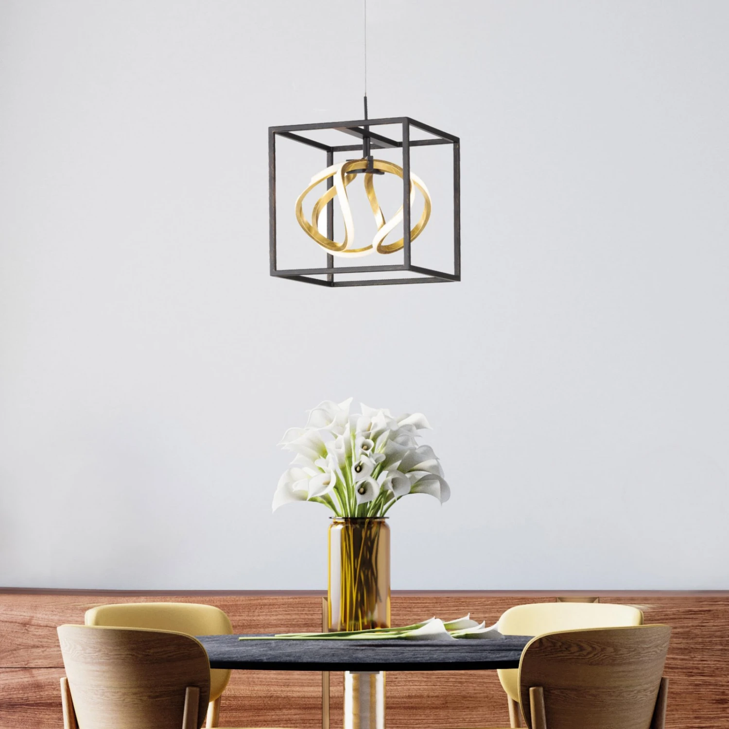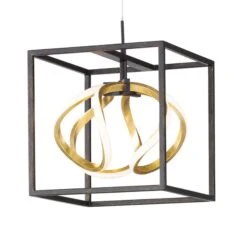 La lampe suspendue Gesa est une lampe suspendue moderne avec des LEDs blanc chaud dans un design artistique. Qu’il soit allumé ou éteint, il est, avec sa cage métallique noire et l’élément lumineux incurvé en feuille d’or, un véritable accroche-regard. Il convient particulièrement bien comme éclairage dans le salon, où il augmente le facteur de bien-être personnel. Grâce à un interrupteur mural classique, la luminosité de la lampe peut être réduite en 3 étapes. Ainsi, l’éclairage optimal dans le salon est toujours assuré.